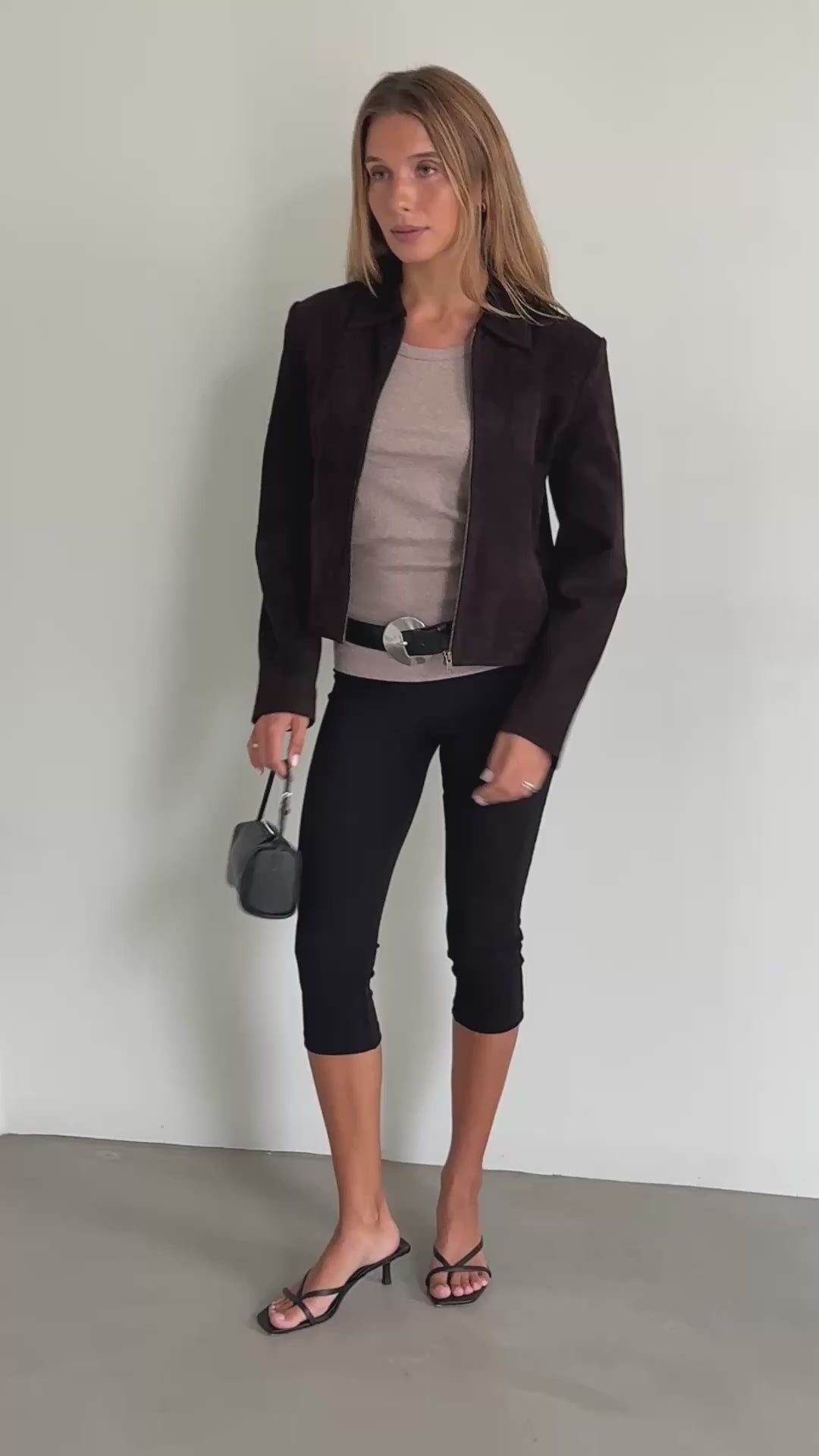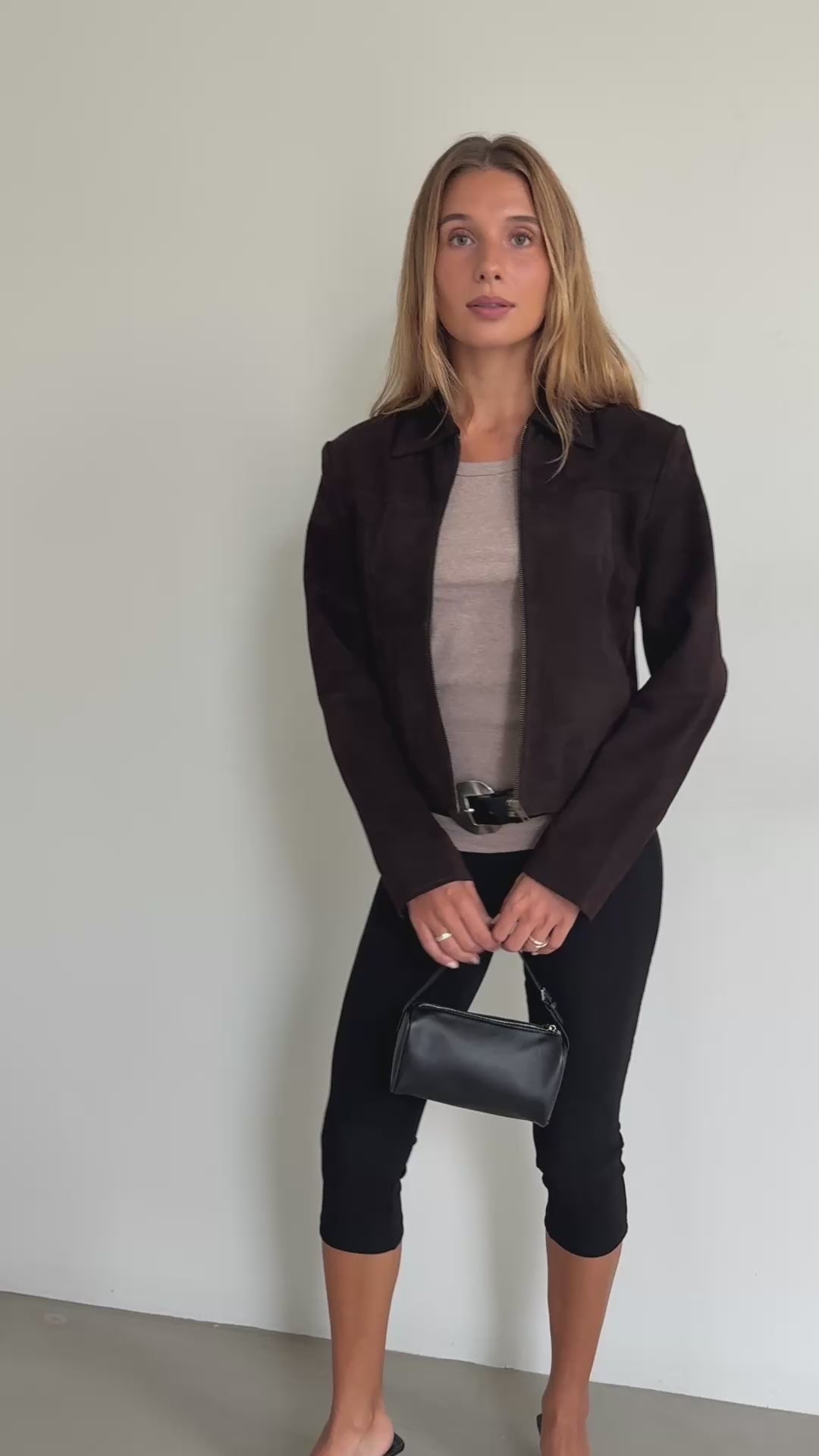 The Ava Jacket is designed to be a transitional and timeless piece to add to your wardrobe. It comes in a beautiful dark brown color and has a fitted and straight design that makes it the perfect minimalist jacket.