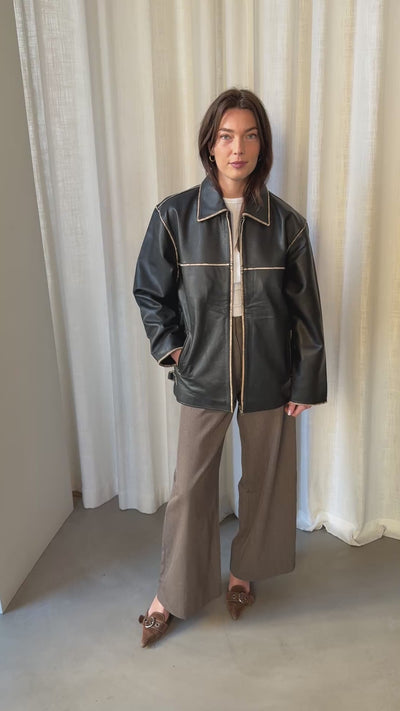 The Black Faded Jacket Sample is made from upcycled leather and is in perfect condition, never worn.