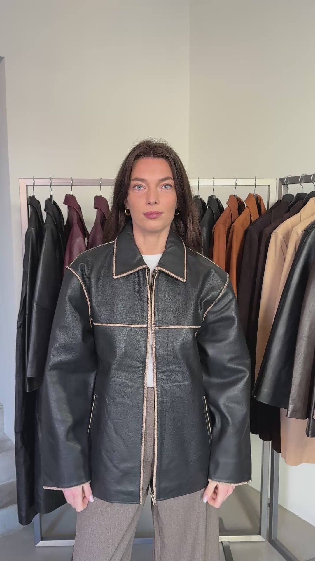 The Black Faded Jacket Sample is made from upcycled leather and is in perfect condition, never worn.