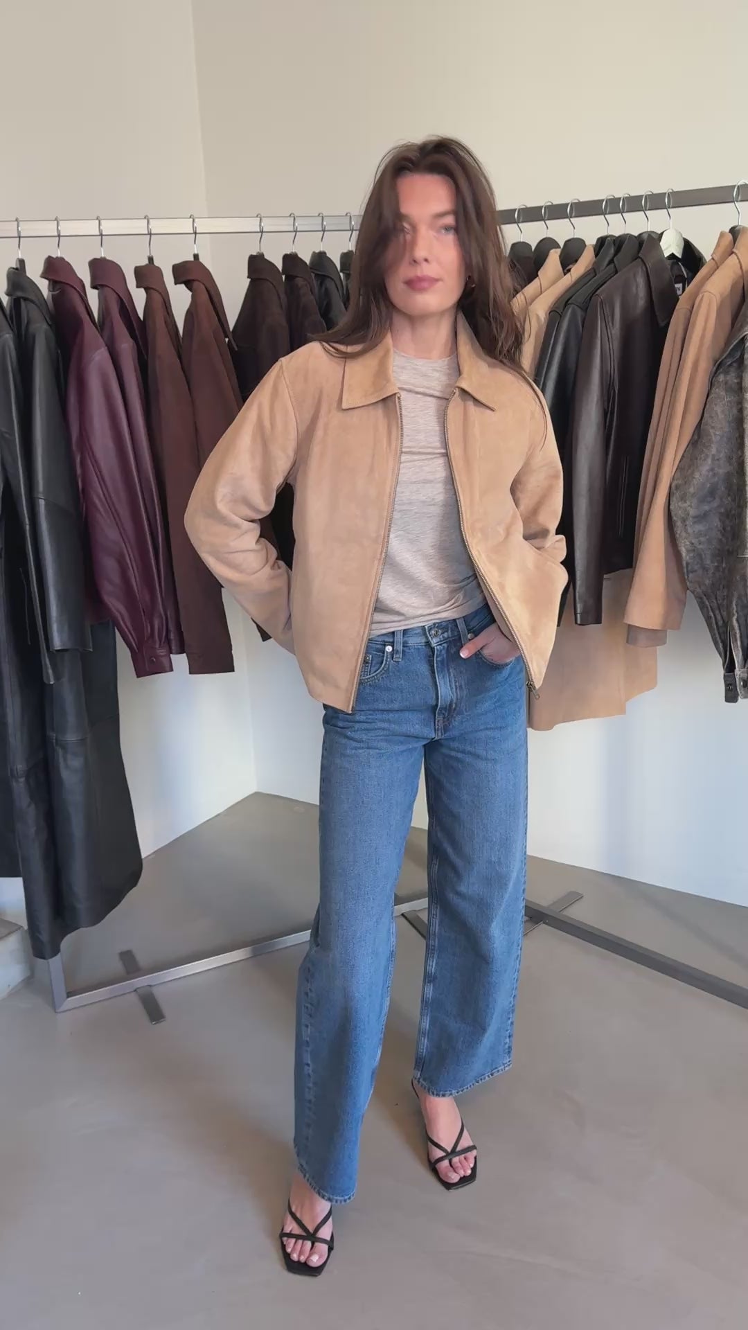 The Gaia Jacket blends timeless style with a classic fit in a beautiful beige tone. This sample is crafted from 100% upcycled suede, featuring the same clean, minimal design as the original. Please note: there are a few small marks from a photoshoot — see images for details but they are very small.