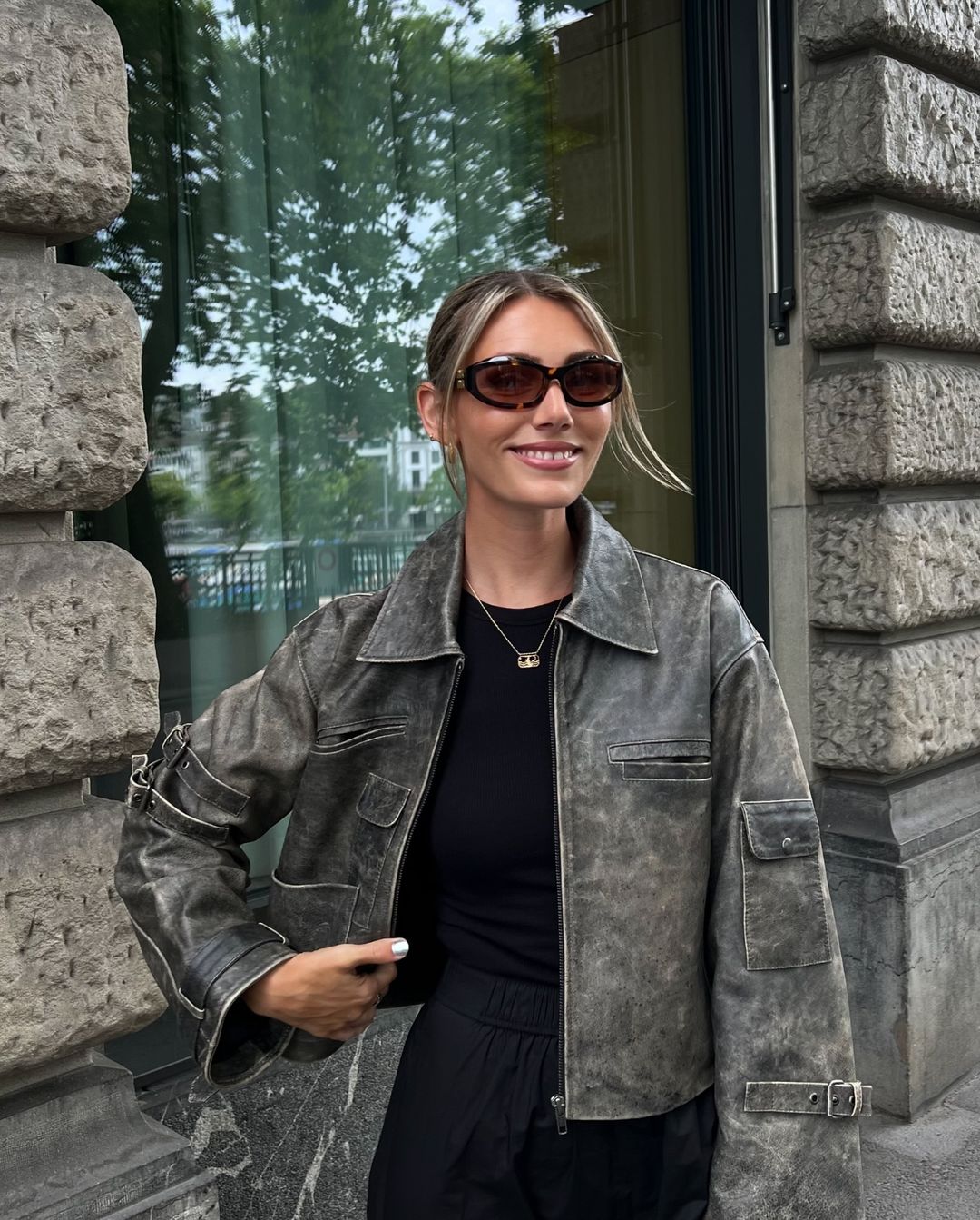 Our Statement Jacket features studded embellishments and details on arms and front for a standout look. The jacket is slightly shorter in the design and shoulders are a bit dropped.