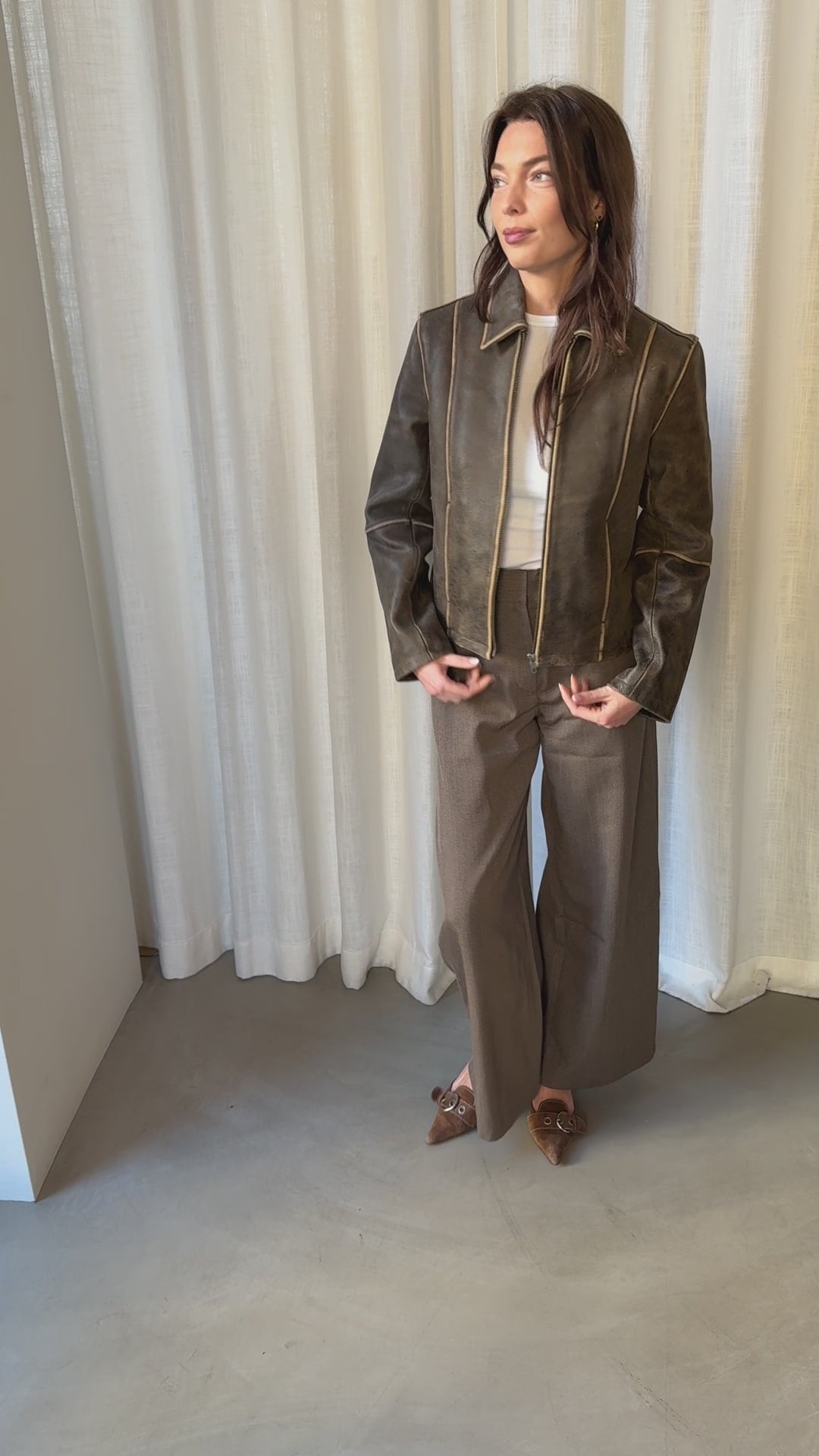 With its softly faded seams and timeless tailoring, the Brown Willow Jacket balances effortless edge with everyday versatility.