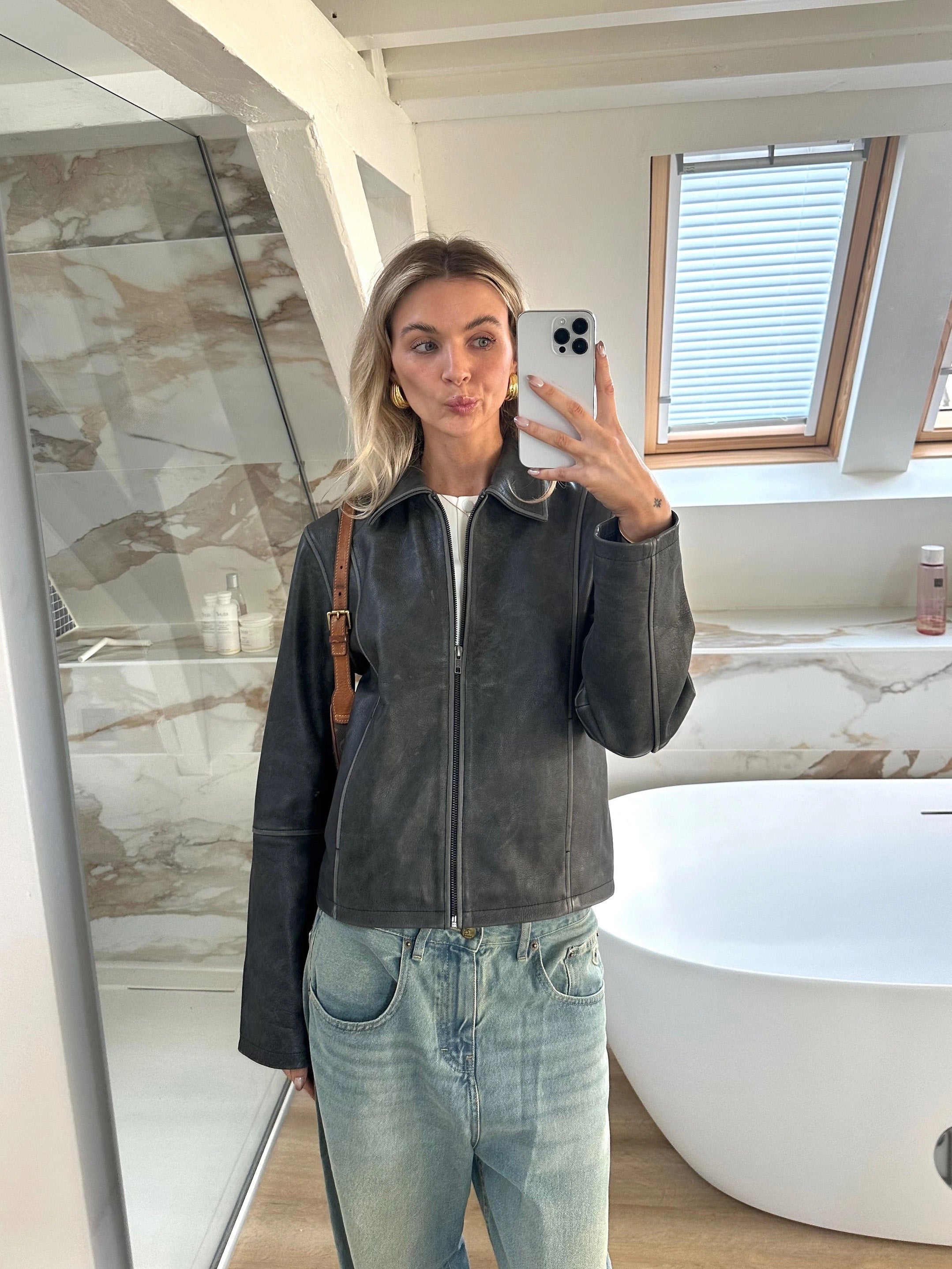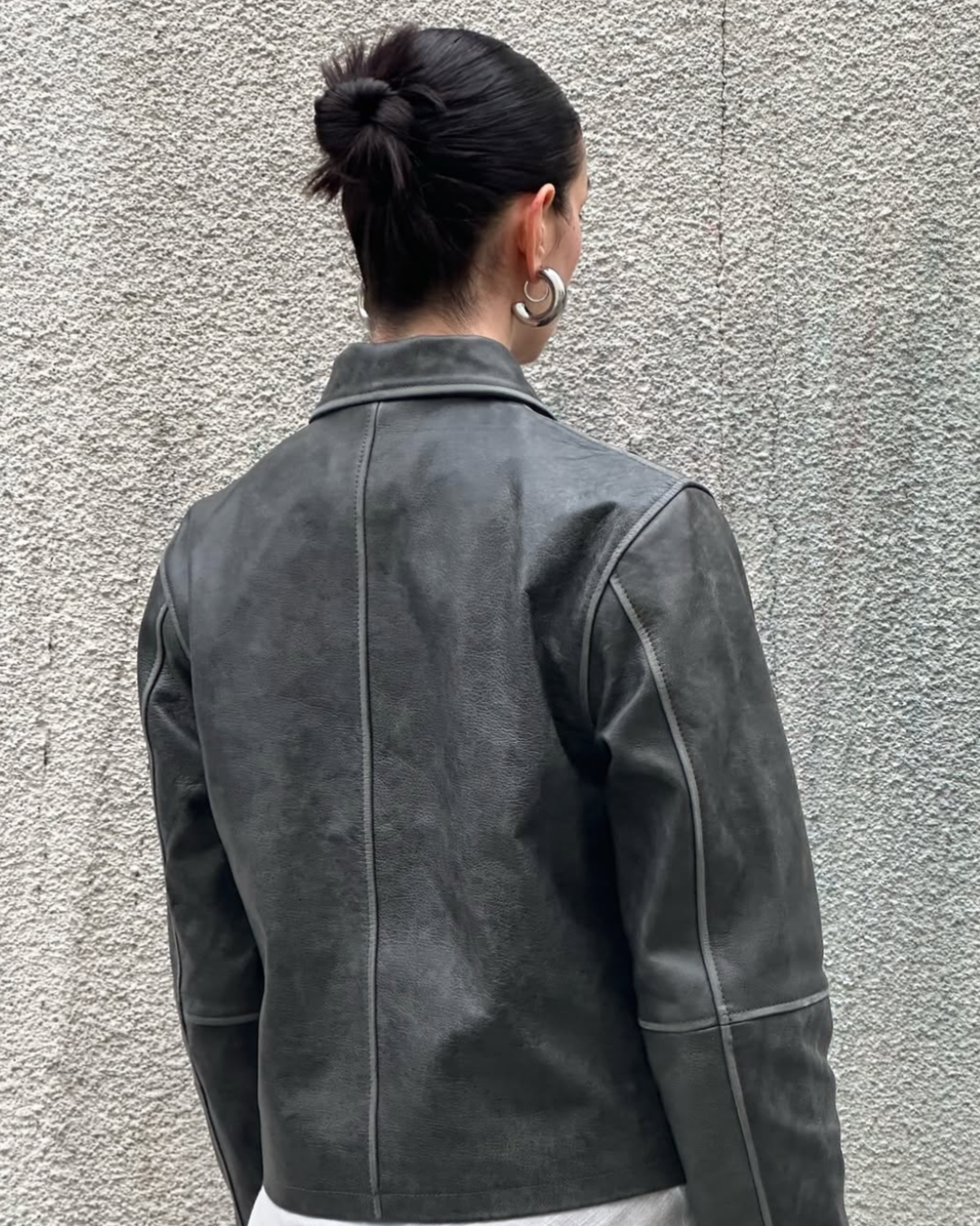 The Willow Jacket features faded edges on the seams, adding a vintage touch. This standout piece is a versatile addition to your wardrobe, perfect for transitioning between seasons.